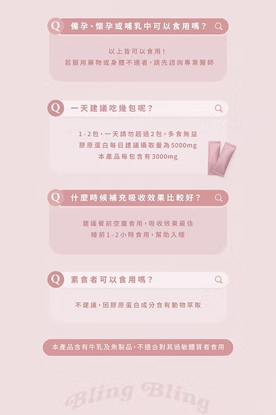 每包含有膠原蛋白3000mg,有效含量不妥協,功效專一不打折,孕婦、哺乳中、